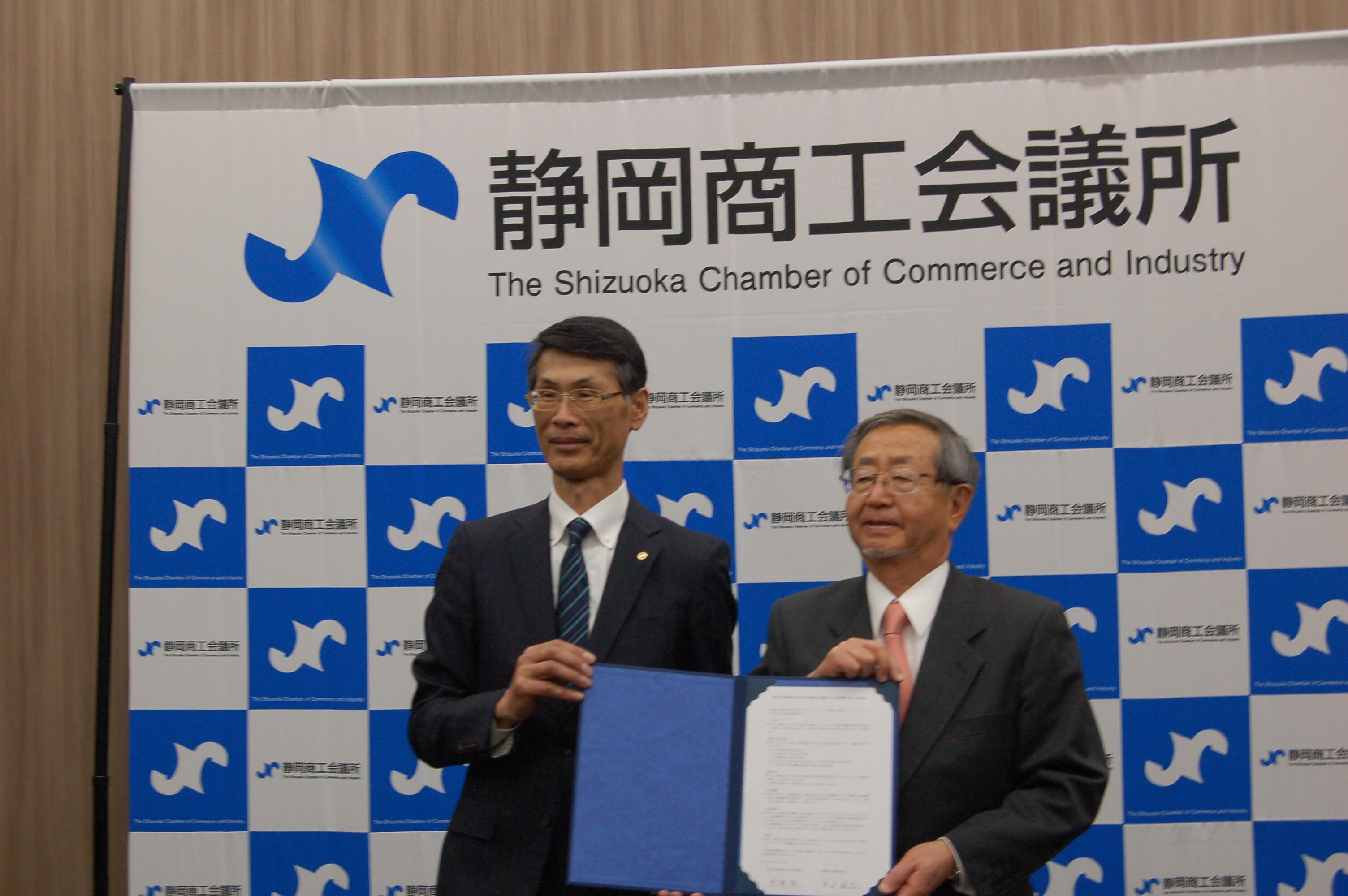 静岡商工会議所(岸田裕之会頭・静岡ガス)は4月25日、学校法人静岡理工科大学と包括連携協定を締結した。同法人は県内に大学や高等学校、中学校、専門学校などを展開し、このほど同所の近隣に静岡駅前キャンパスを開設。地域社会の発展と人材の育成に寄与することを目的に、産学連携、学生および生徒のキャリア形成などの支援に関する事項といった幅広い分野で両者は協力していく。