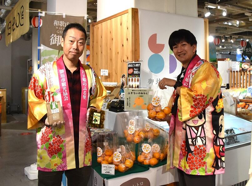御坊商工会議所(和歌山県、上西一永会頭・大洋化学)は12月2日まで、東京・秋葉原の日本百貨店しょくひんかんで、同店と日本商工会議所が開催している「全国から毎週集まる!!地域うまいもんマルシェ」に出店している。ブースでは、使われなくなった小学校の校舎を活用した施設で水耕栽培したわさびやわさびの葉を使ったジェノベーゼ、“日本一短いローカル私鉄”として人気の紀州鉄道をモチーフにした和菓子、紀州名物のおかずみそ「金山寺みそ」などを出品。また、大きさは不ぞろいながら甘くてジューシーな御坊産のみかんやミニトマトなども販売している。