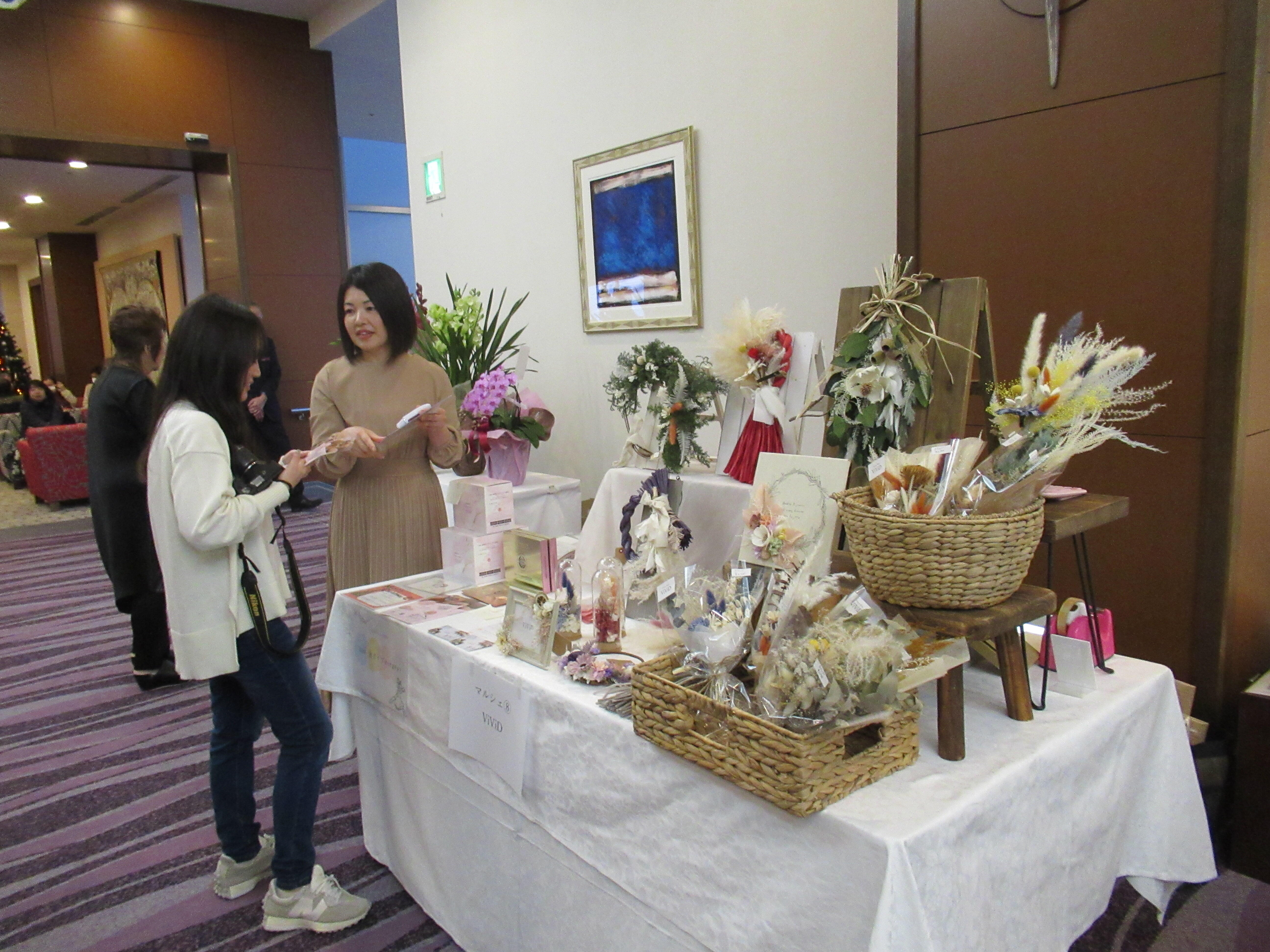 また、今回はホテル内で「女性起業家応援マルシェ」を同時開催した。出店者・新規創業者の支援や女性起業家の開拓などを目的に初めて企画したもので、来場者はアクセサリーやドライフラワーの買い物、ネイル体験などを併せて楽しんだ。