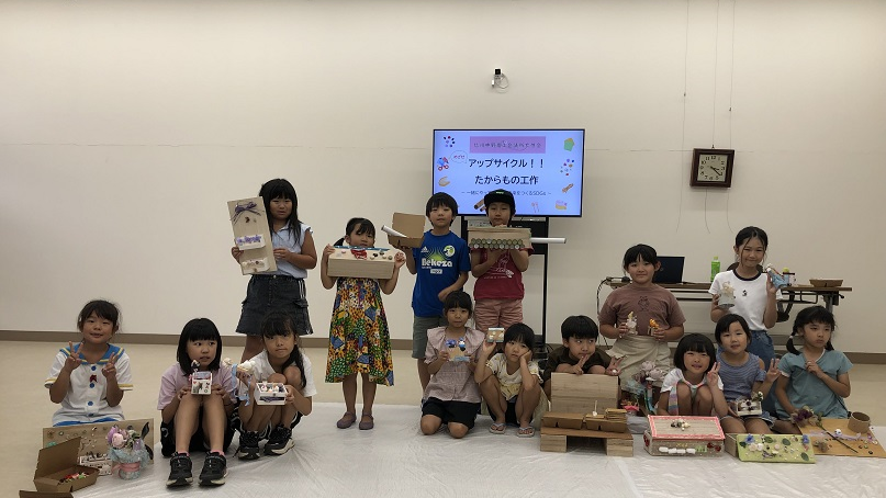 信州中野商工会議所(長野県、山田彰一会頭・山形屋)女性会(町田美代子会長)は8月2日、「めざせアップサイクル!!たからもの工作 キッズイベント~一緒にやってみよう!未来をつくるSDGs~」と題し、子どもたちを対象に環境学習と工作体験のイベントを開催した。まず、SDGsの目標⑪「住み続けられるまちづくりを」、⑫「つくる責任・つかう責任」、⑬「気候変動に具体的な対策を」についてスライドを使って学習した。目標⑪では自分たちの暮らすまちを大切にする意義を考え、⑫では「捨てる前に何かに活用できないか?」というアップサイクルなどの視点を持つことの重要性を学んだ後、商店街の店舗などから集めた端材を使って工作を実施。子どもたちは自由な発想によって個性あふれる作品をつくり上げた。また、⑬に関連する地球に優しい行動として「打ち水」を実際に行った。