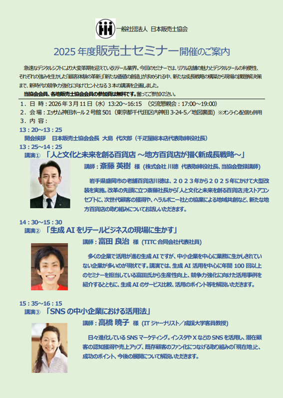 2025年度「販売士セミナー」(3/11)の開催について(日本販売士協会)