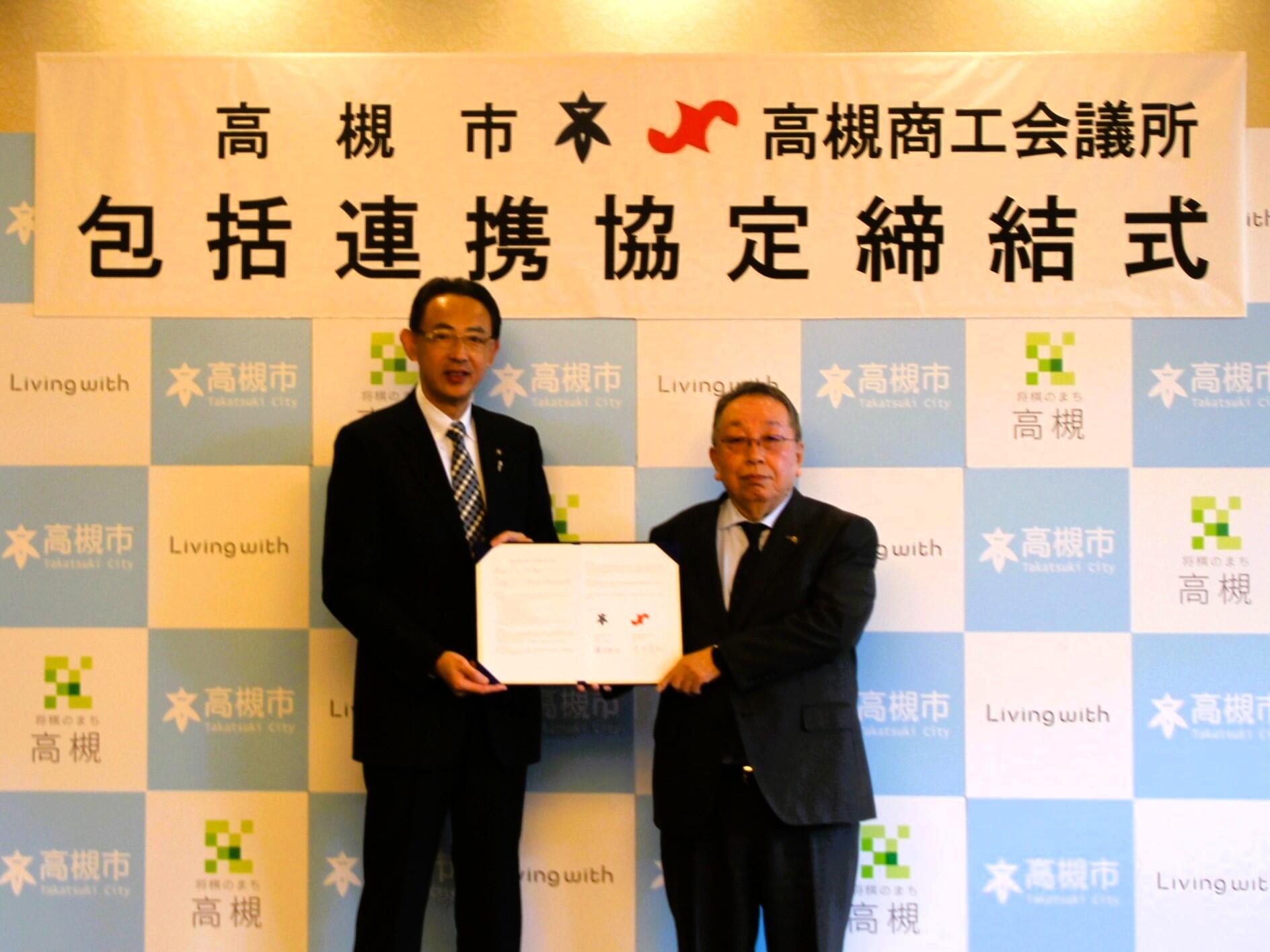 高槻商工会議所(大阪府、桑内義和会頭・桑内)は1月29日、高槻市と市内商工業の発展と活力ある地域社会の創造に関する包括連携協定を締結した。市内商工業の発展や地域経済の振興、防災・災害対策などでさらに連携を深め、お互いが持つノウハウなどの資源を有効に活用して協働による取り組みをさらに推進することを目的としている。今後、商工業者の経営基盤強化や諸課題の解決、防災力向上などに向け、両者が連携して支援に取り組むことで、まちのさらなるにぎわいづくりや地域社会の活性化を図る。