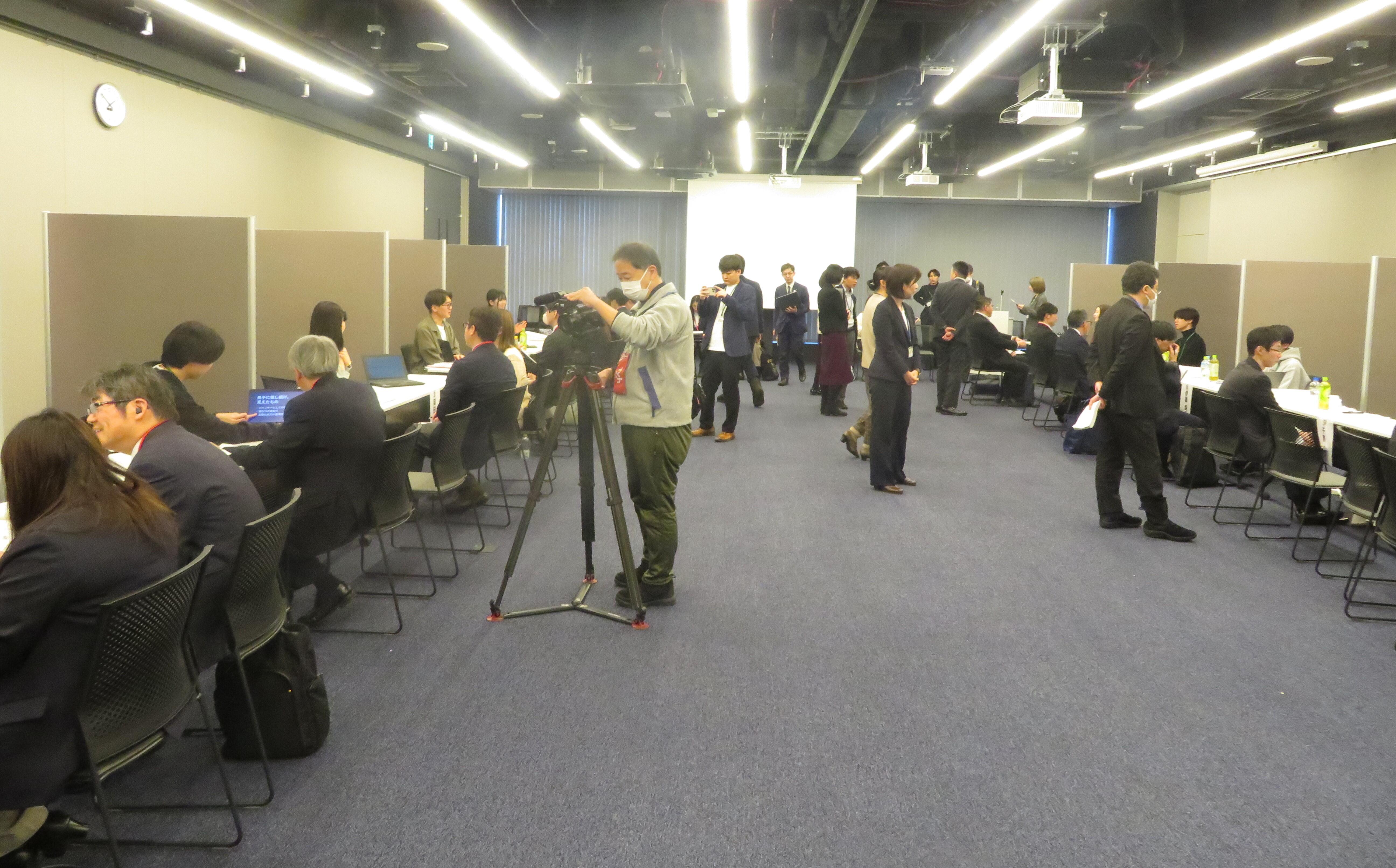 札幌商工会議所(北海道、安田光春会頭・北洋銀行)は2月12日、学生が自らを企業にアピールする新しい就職活動モデルとして「逆求人イベント」を北海道新聞社交流スペースDO-BOX EASTで開催した。同イベントは、学生が企業のブースに話を聞きに行く従来の企業説明会とは異なり、企業の採用担当者が気になる学生のブースを訪れて、学生の自己PRを聞くというもの。札幌市内の文系学部の大学生12人と15社の採用担当者が参加した。参加した学生は、事前の説明会で自己紹介や自己分析、プレゼンテーション資料の作成などについてキャリアコンサルタントのレクチャーを受けてイベントに臨み、採用担当者らに自分の強みやそれに基づくエピソードなどをプレゼンした。イベントでは、企業と学生の投票によるマッチングを行い、終了後は学生・企業へそれぞれ結果を伝えた。