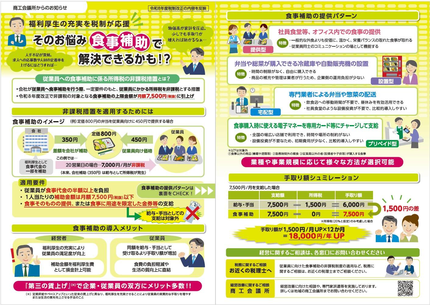 従業員への食事補助に係る所得税の非課税措置の周知チラシ(そのお悩み「食事補助」で解決できるかも⁉)公表