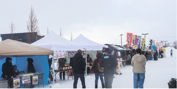 当日は弘前商工会議所(同)青年部(弘前YEG)が考案した雪上スポーツ「SONDO」(水鉄砲バトル)やテントサウナなど、さまざまなアクティビティーを用意。会場は1500人の来場者でにぎわいを見せた。
