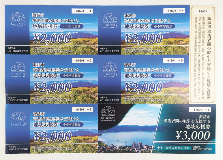 諏訪商工会議所(長野県、山谷恭博会頭・諏訪交通)はこのほど、諏訪市内の事業者を対象とした「事業に関する取引に限定したプレミアム付地域商品券」事業を初めて実施した。商品券の使用用途を仕入れ、店舗の改修、事業車両の経費など事業に関連する取引・支出に限定している。物価高騰の影響を受けている市内事業者を支援する。