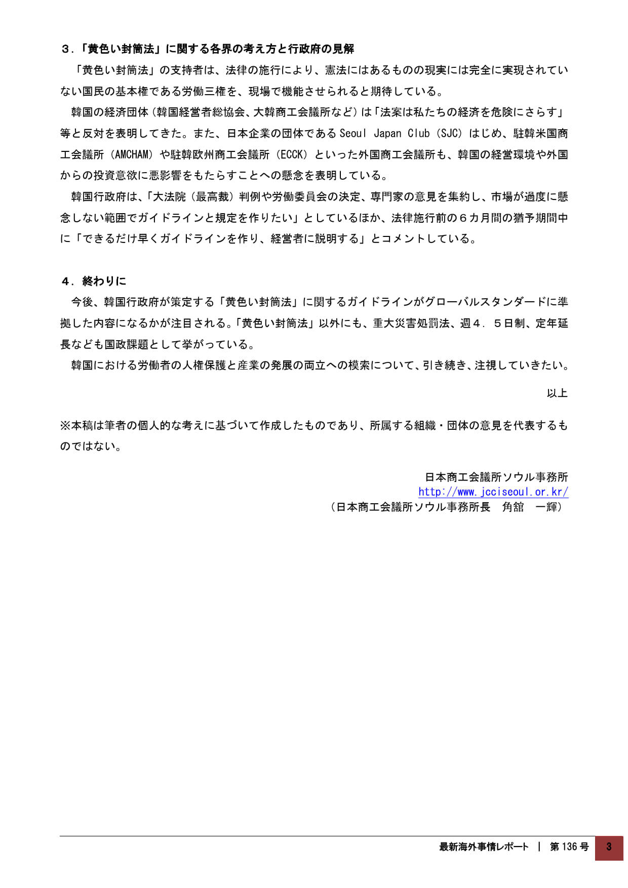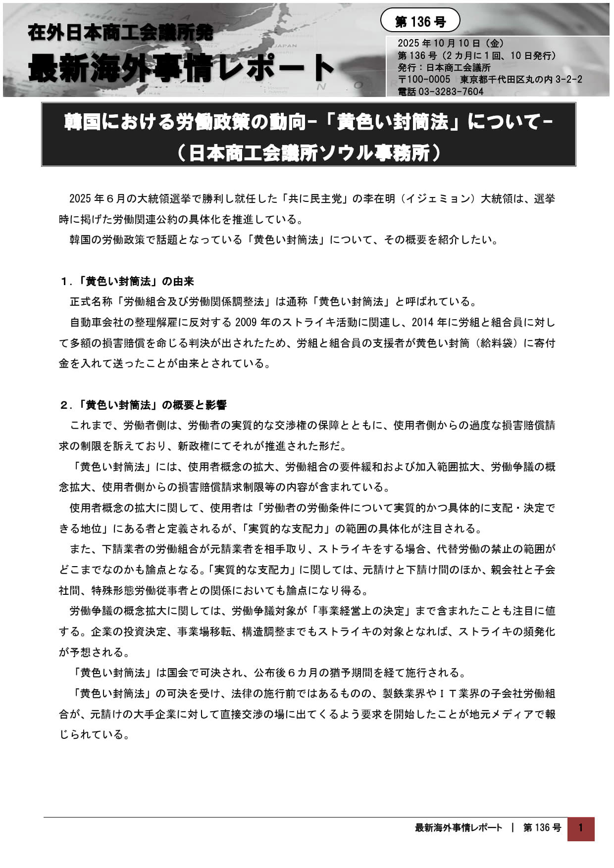 【最新!海外事情レポート】韓国における労働政策の動向-「黄色い封筒法」について-(日本商工会議所ソウル事務所)